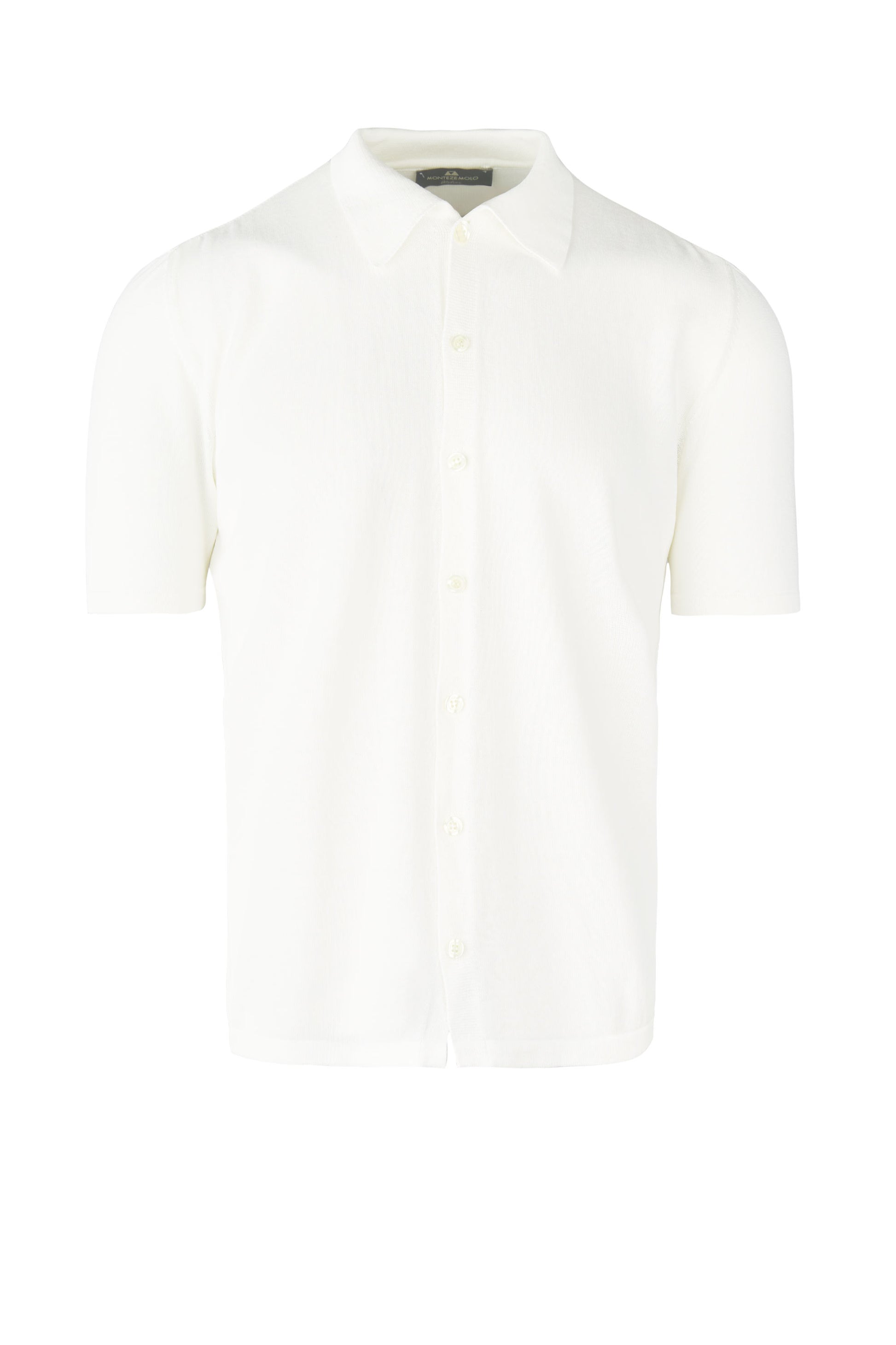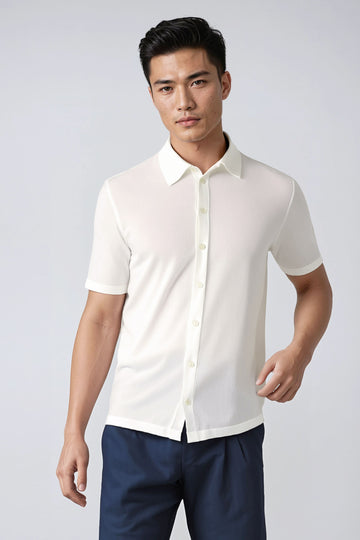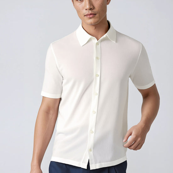 This lightweight knit polo shirt features a classic collar and front button closure, providing a clean and refined design. Short sleeves make it perfect for warmer months, while the soft, breathable knit ensures all-day comfort and freshness. Ideal for both casual wear and dressier ensembles.