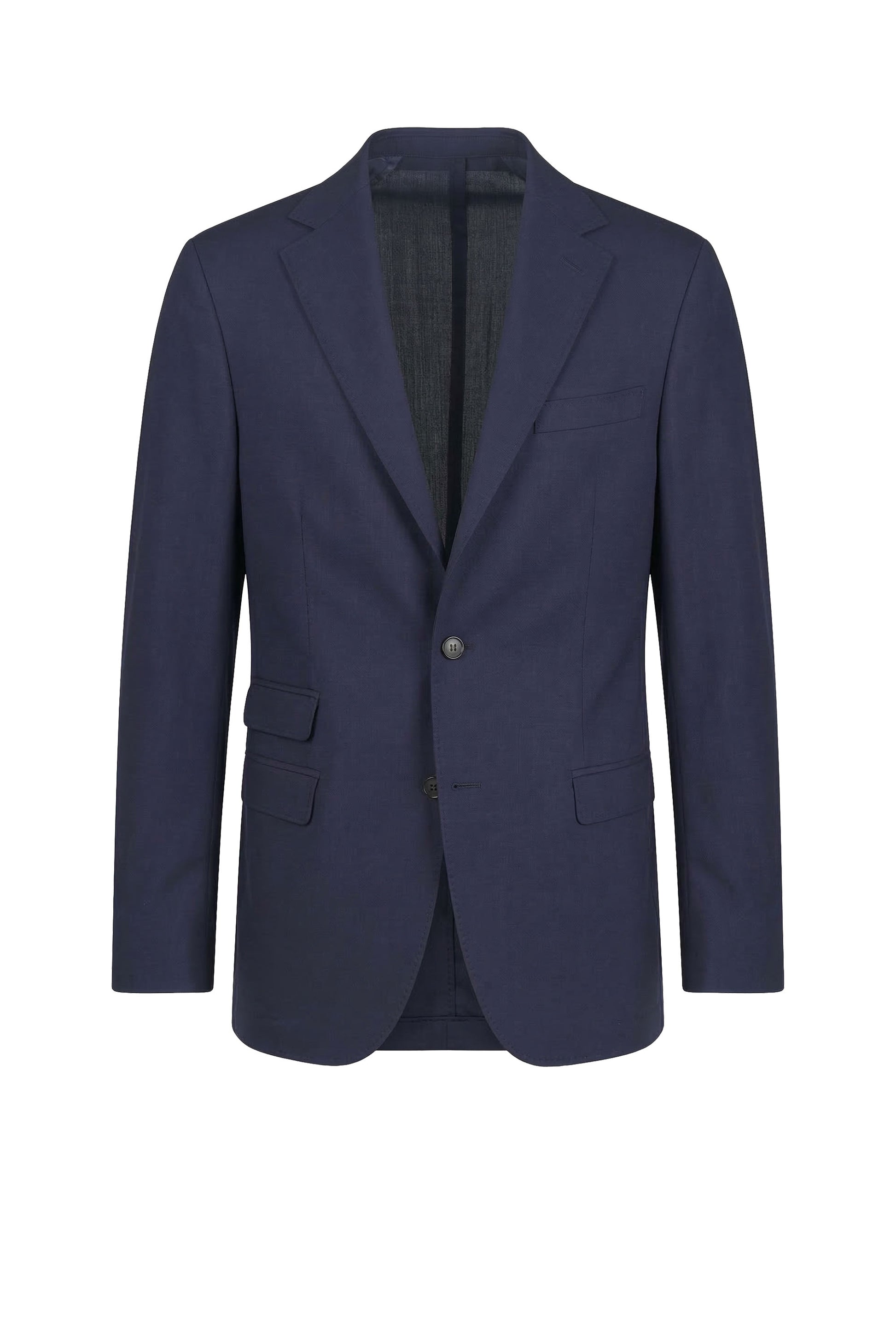 Fresco wool reps fabric; unlined construction; full AMF stitching; two-button closure; classic lapel; ticket pocket; flap pockets; chest welt pocket; four-button cuffs; lightweight breathable fabric.