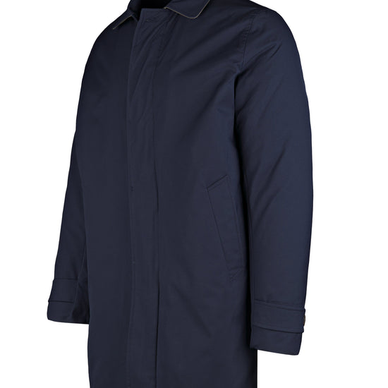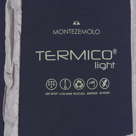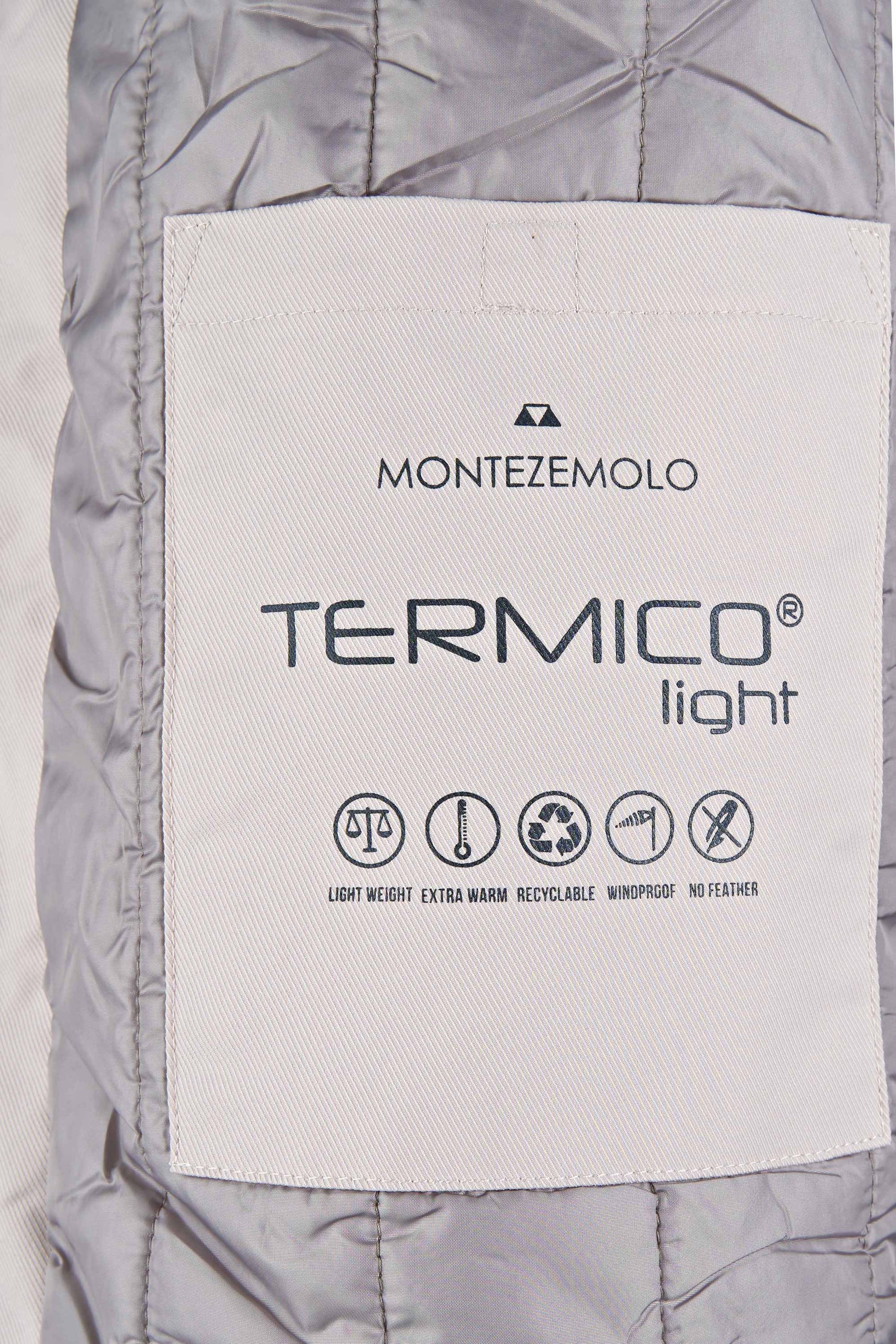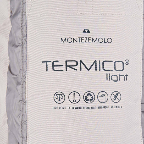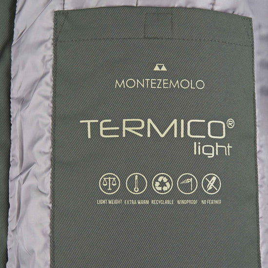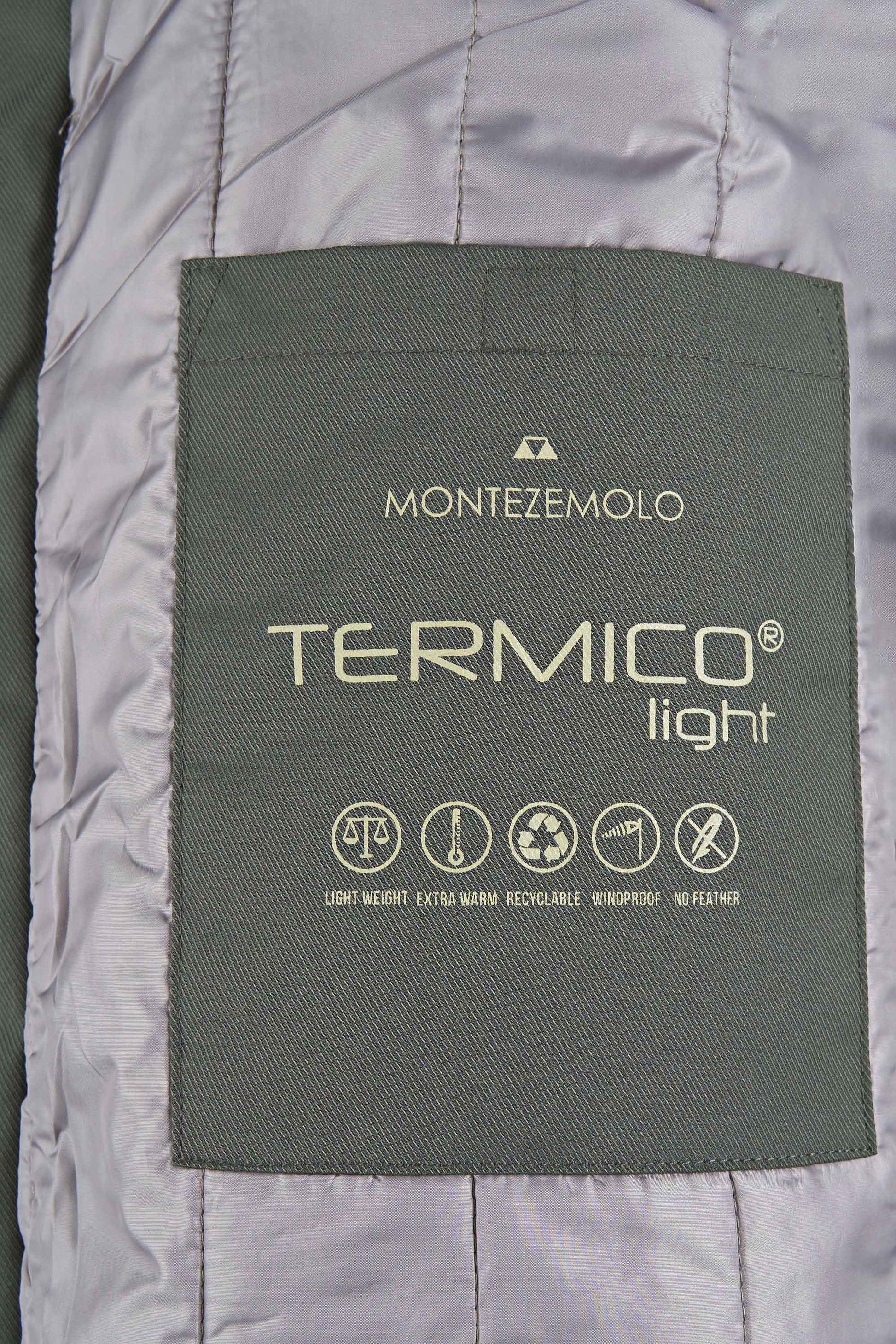 Water-repellent, windproof technical shell; TERMICO® Light insulation: lightweight, extra-warm, recyclable and down-free; dual closure: inner full-zip + concealed snap placket; shirt collar; angled welt pockets; adjustable cuff tabs with button; mid-thigh length; fully lined interior.