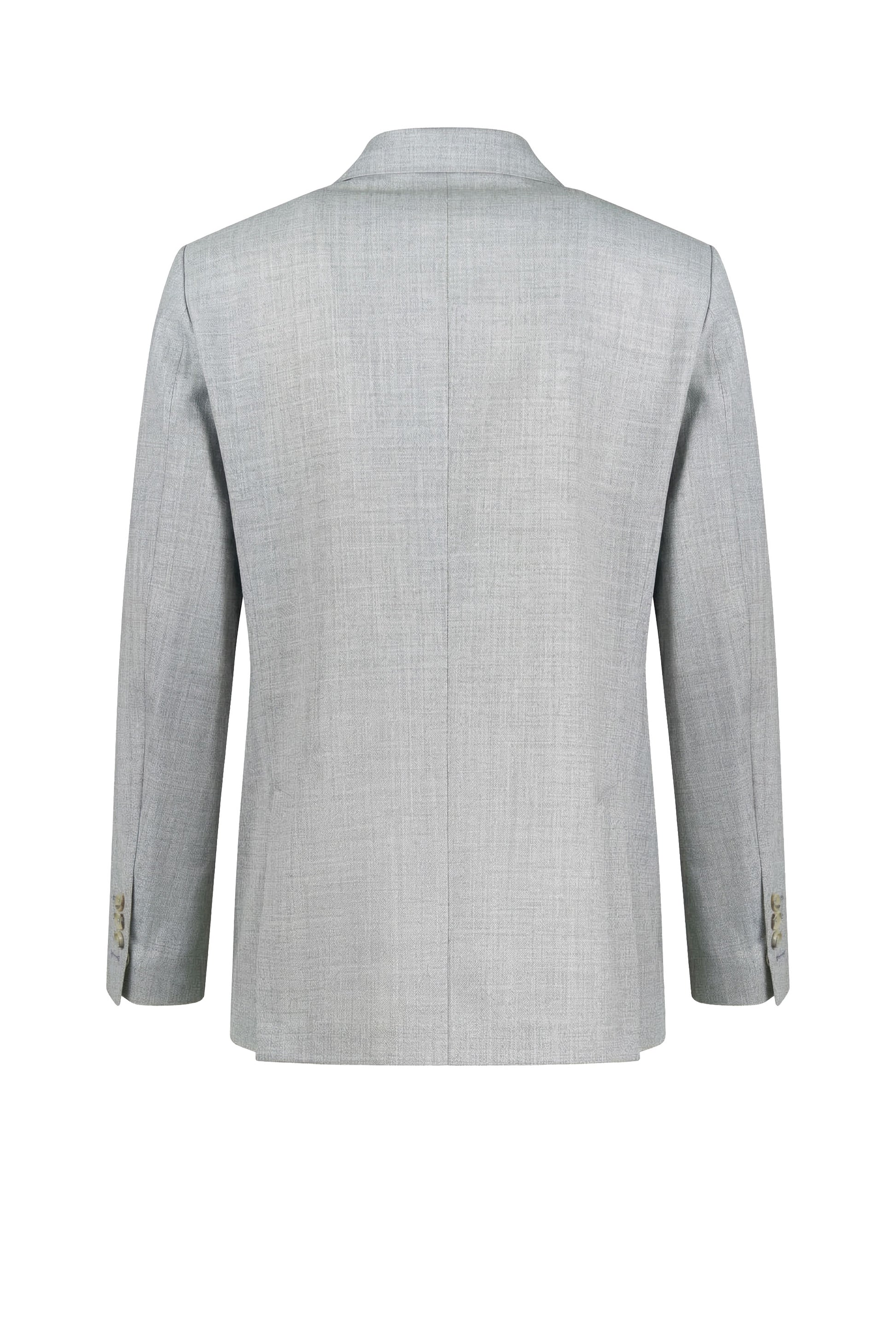 Double-breasted jacket crafted from prestigious fabrics by Ing. Loro Piana & Co® in pure extrafine merino wool, selected for its exceptional fineness, lightweight feel and natural breathability. The quality of the fiber and the refined weave create an elegant surface with subtle texture, offering a soft hand and a naturally refined appearance.