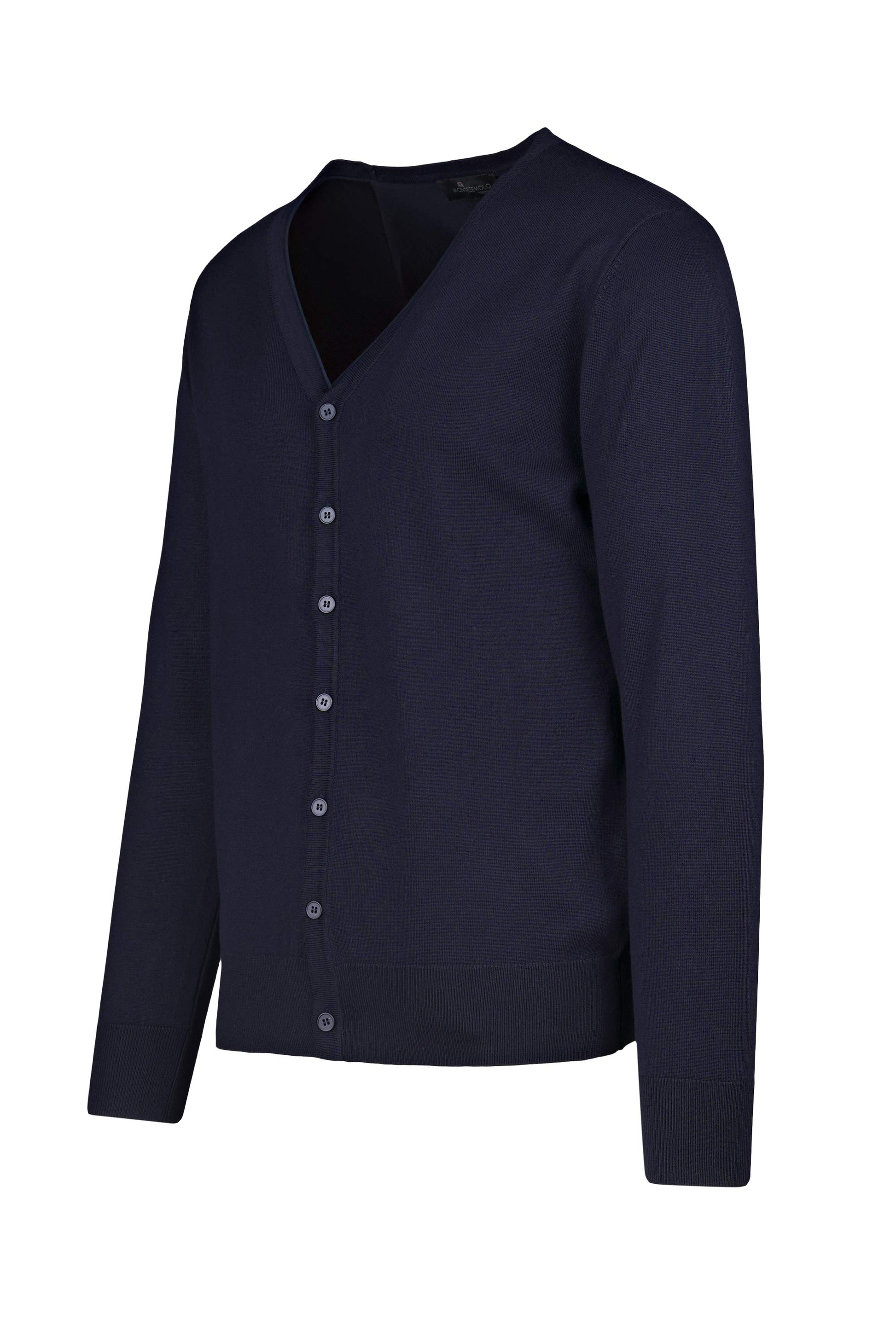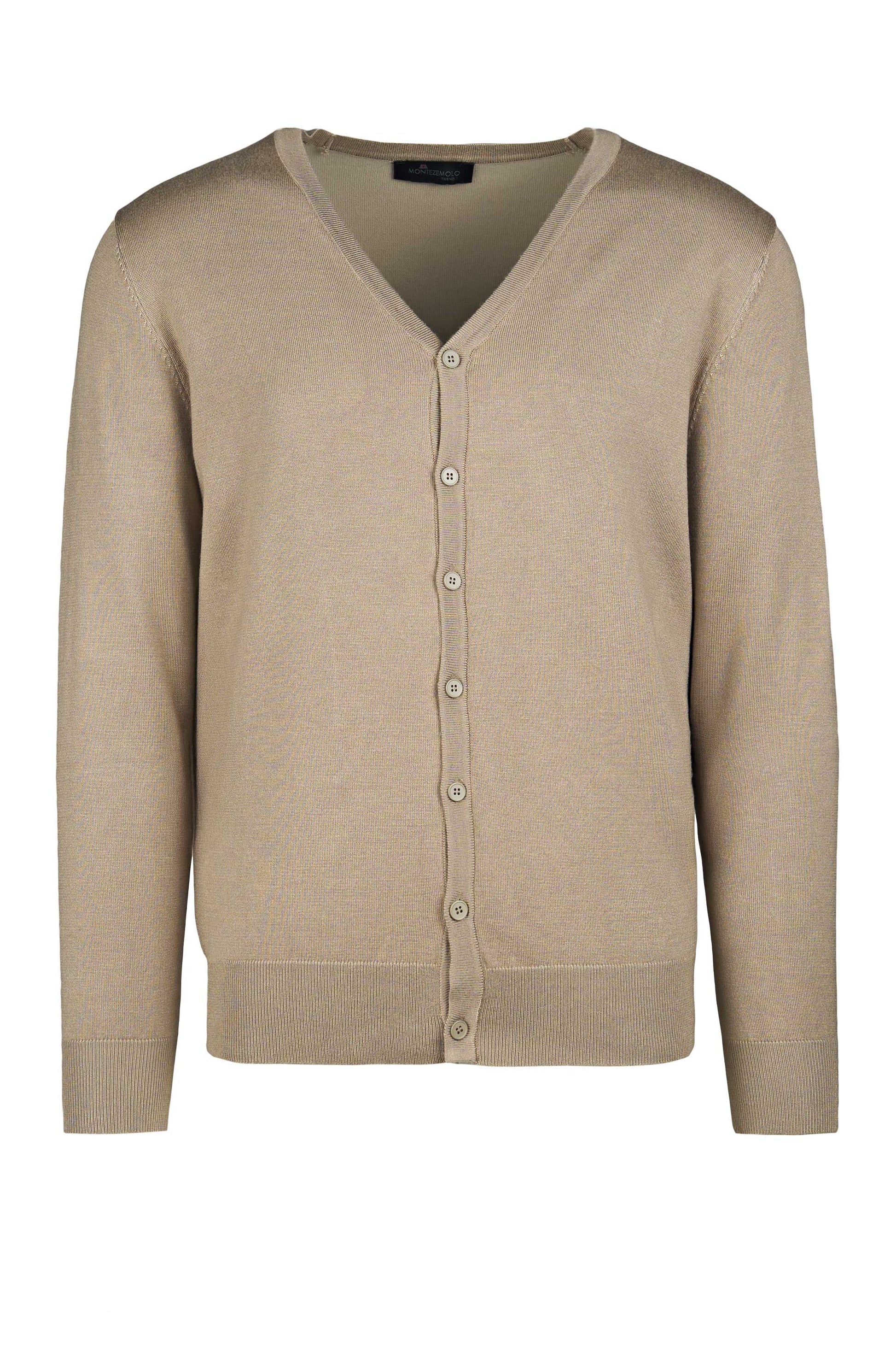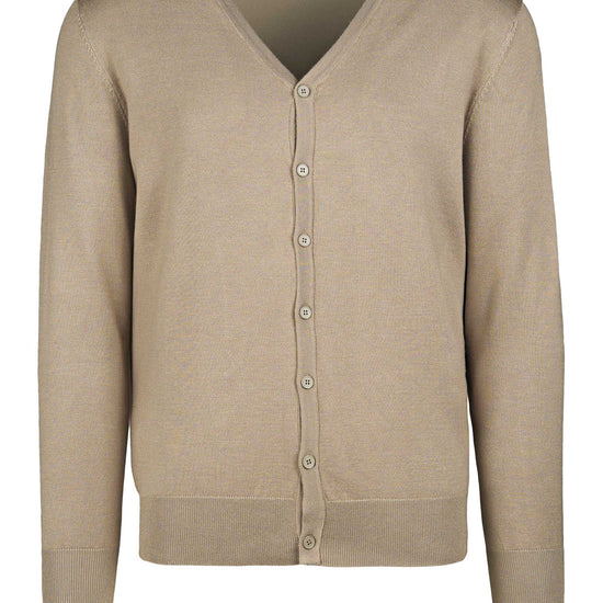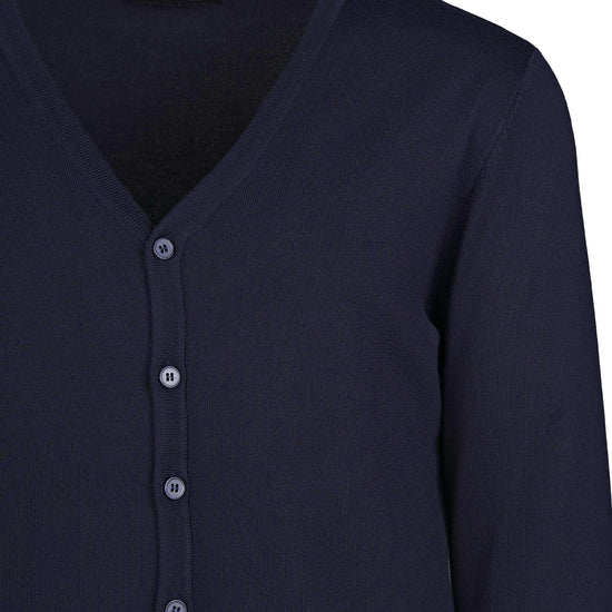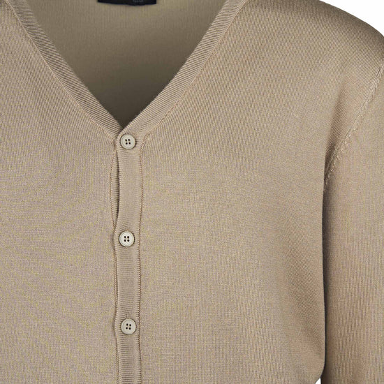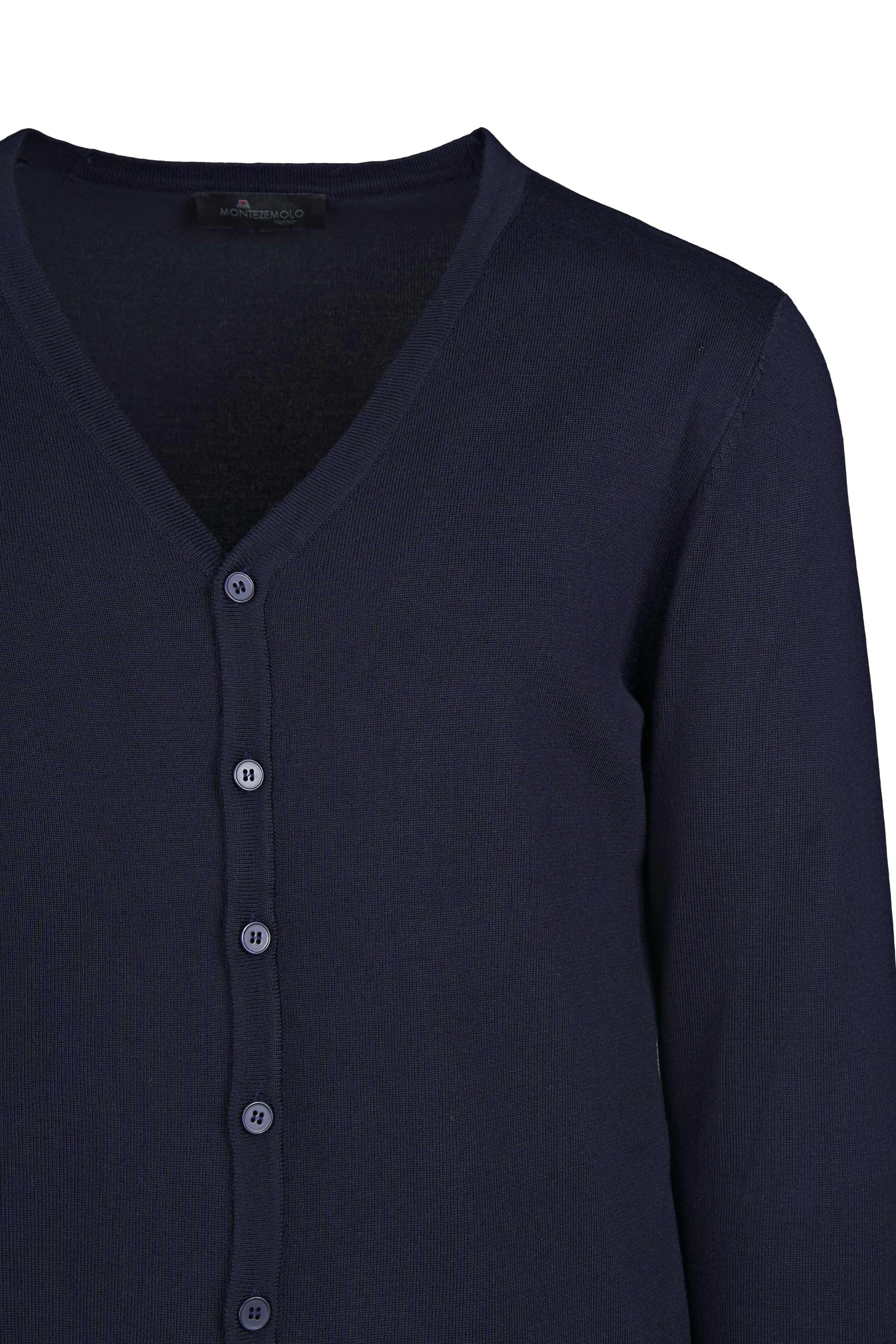 A clean, lightweight cardigan knitted in viscose for a silky touch and fluid drape for everyday outfits. The V-neck is framed by a fine rib trim that continues along the buttoned placket; fully-fashioned shoulders deliver a neat, comfortable fit. Ribbed cuffs and hem help the garment keep its shape, while the fine gauge makes it easy to layer over a tee or a shirt. The minimal aesthetic gives it a modern smart-casual attitude. Available in three colors.