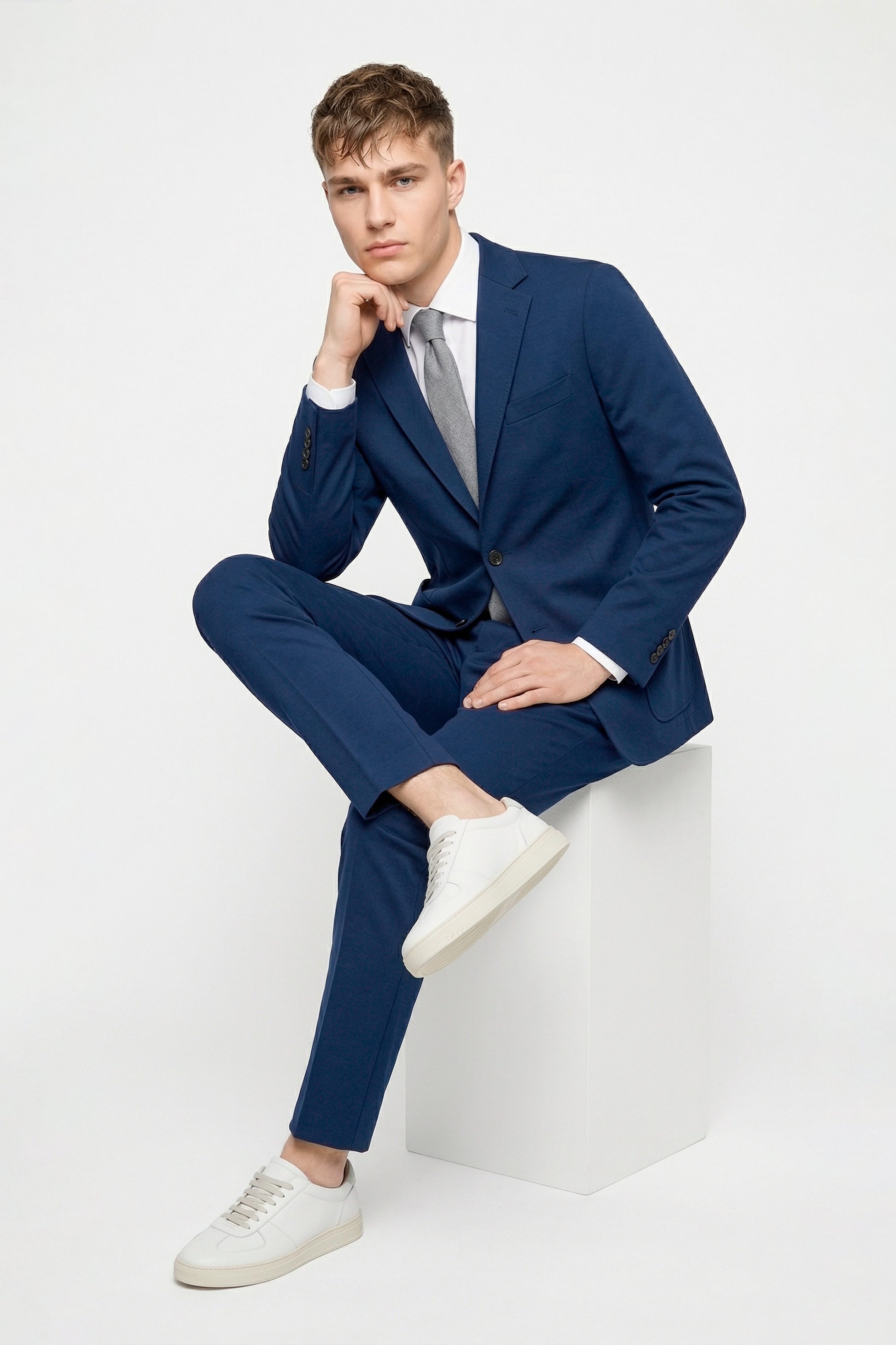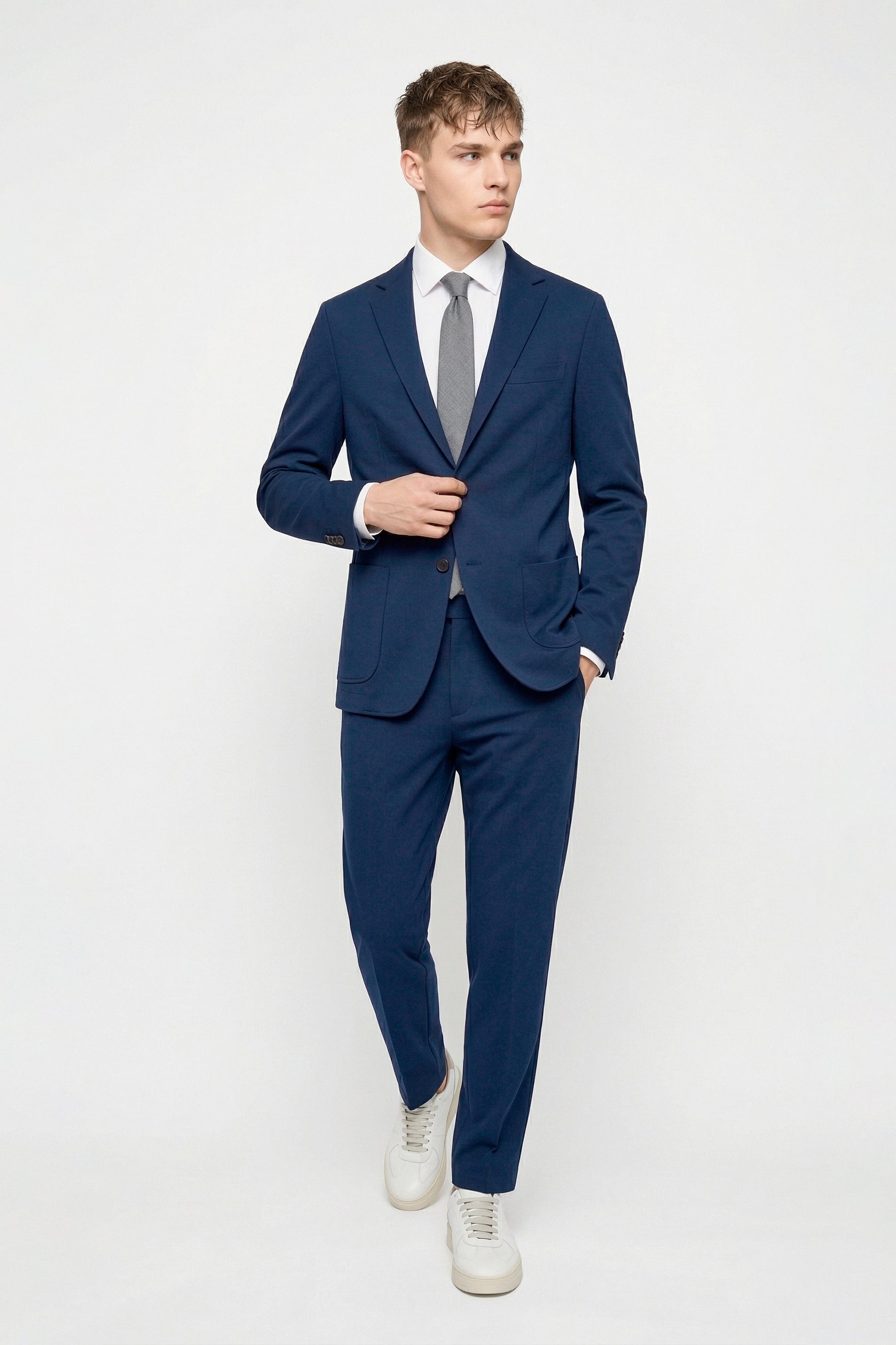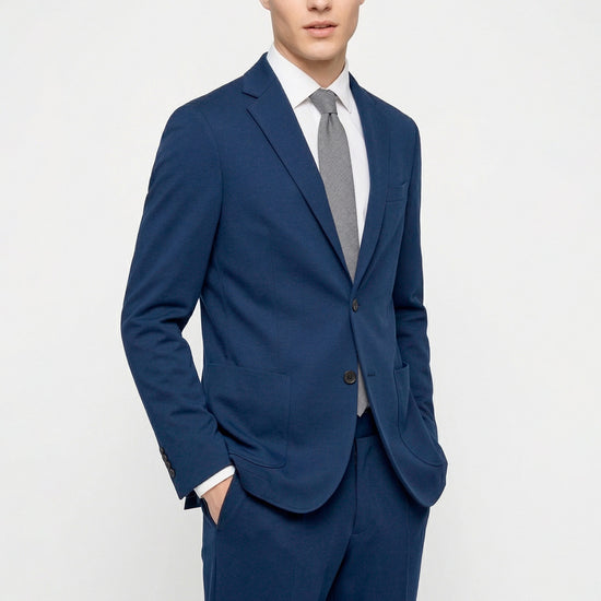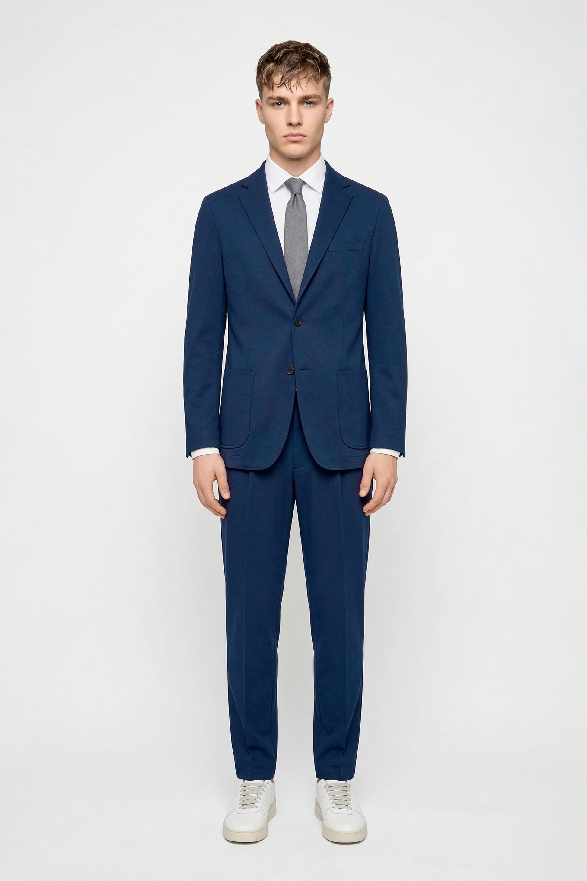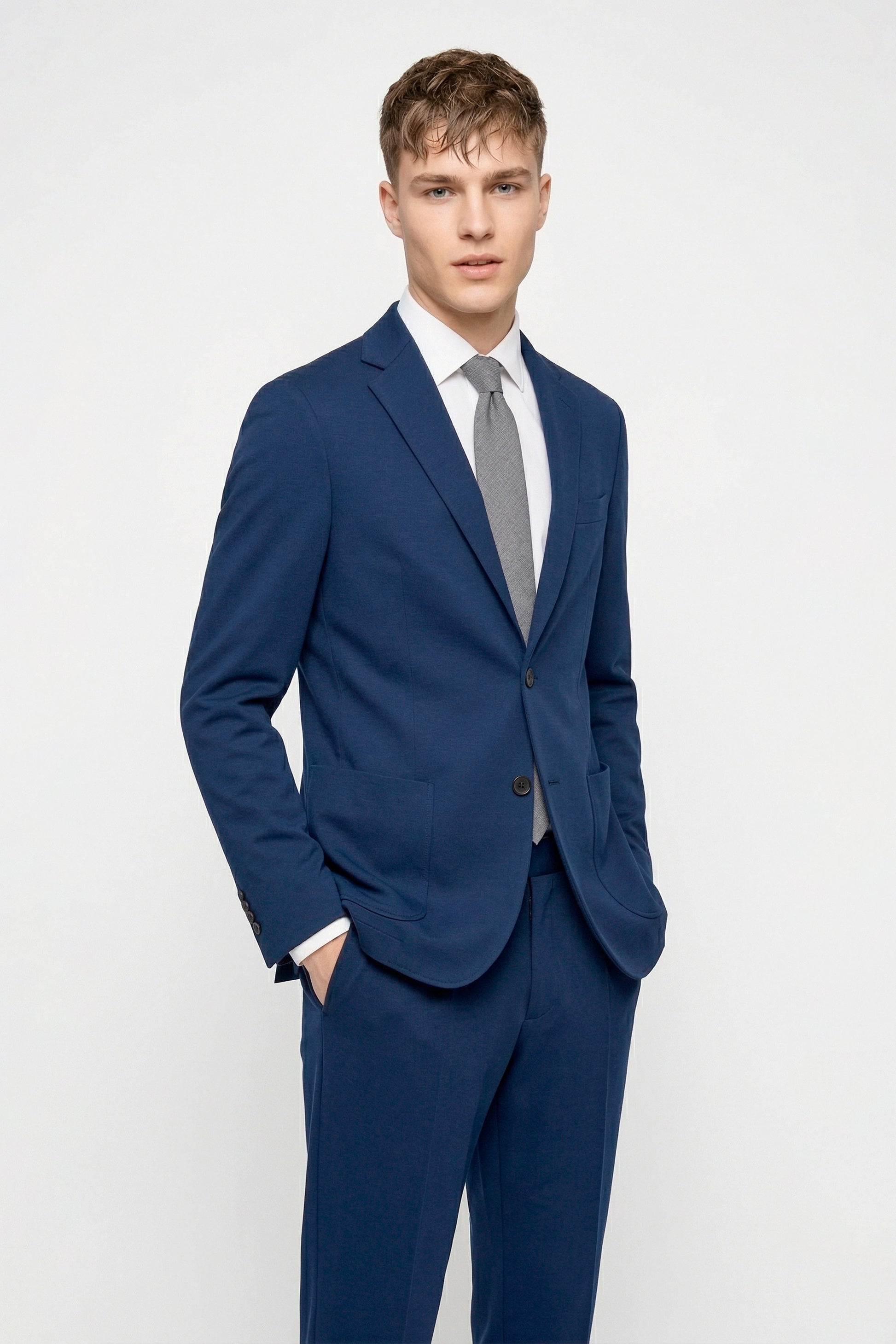 Blazer from the ZMART line crafted in diagonal jersey fabric, designed to combine the elegance of traditional tailoring with the comfort of modern garments. The structured jersey with diagonal weave provides a refined texture and natural stretch, ensuring freedom of movement and all-day comfort.