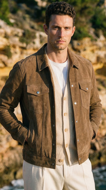 Giacca da campo in pelle scamosciata sfoderata