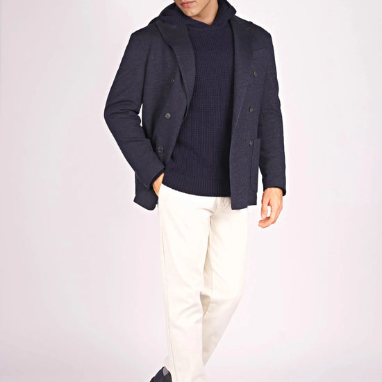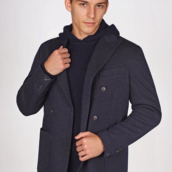 Giacca doppiopetto in tessuto jersey pinstripe
