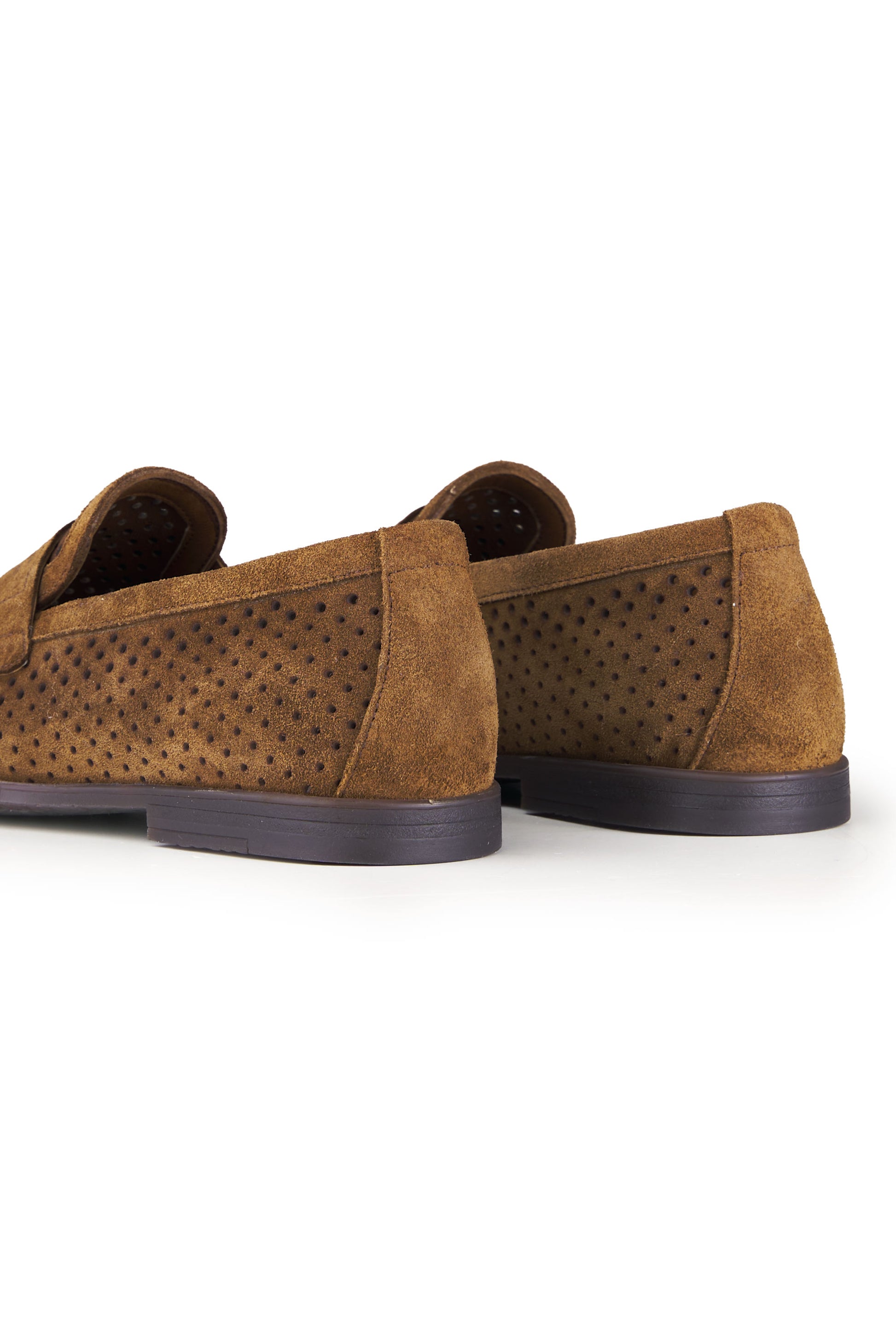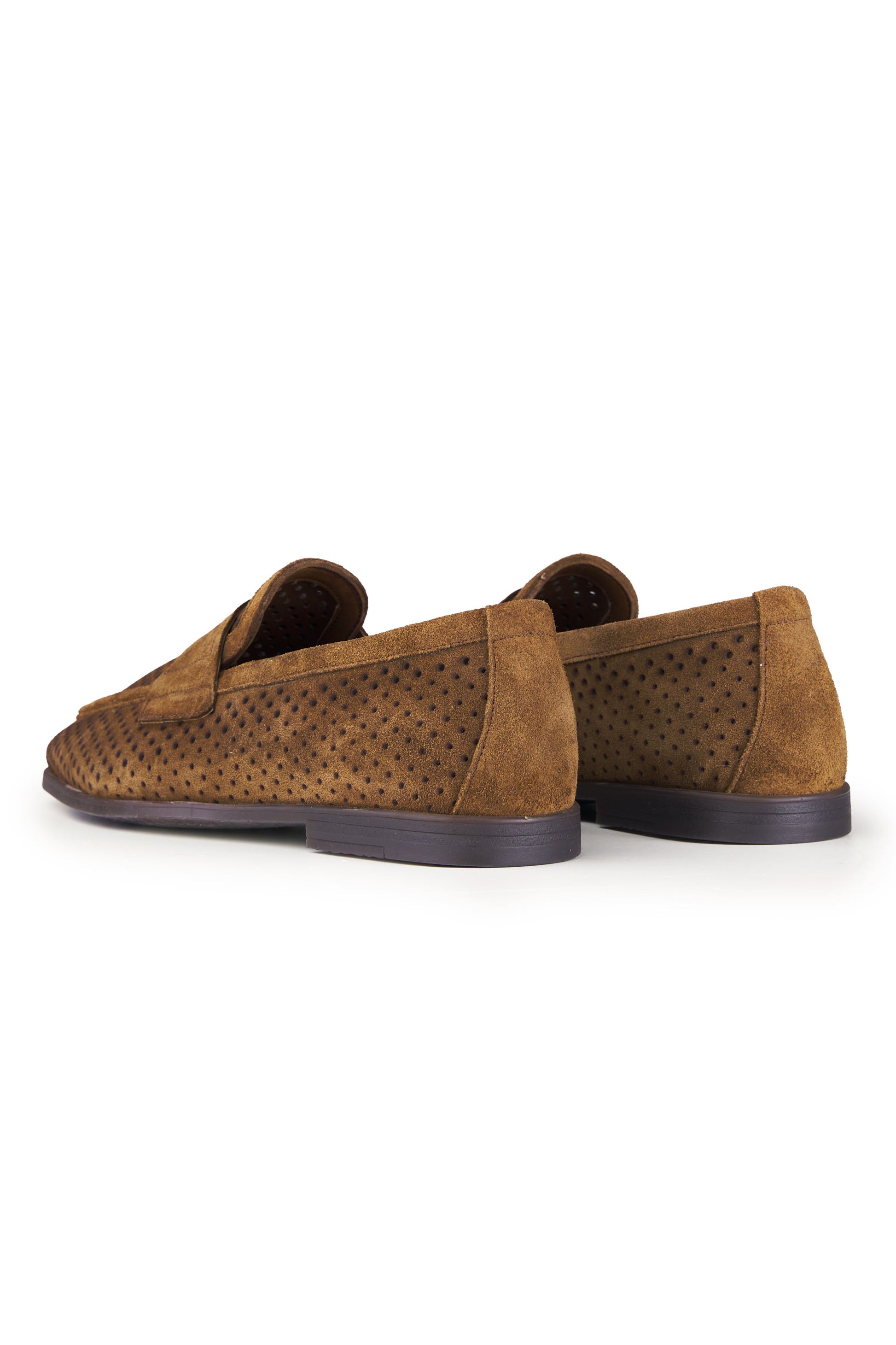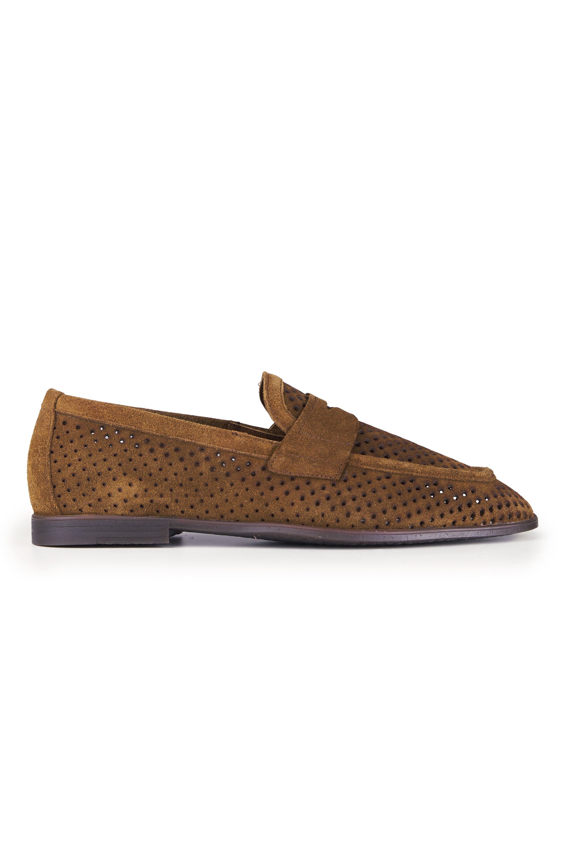 Mocassino realizzato in pelle scamosciata di alta qualità, caratterizzato da una perforatura diffusa che ne esalta leggerezza, traspirabilità e comfort durante l’utilizzo nelle stagioni più calde. La tomaia presenta una lavorazione pulita e precisa, con mascherina frontale integrata che richiama l’estetica classica del penny loafer reinterpretata in chiave contemporanea. La costruzione è pensata per offrire una calzata equilibrata e naturale, con una struttura flessibile che accompagna il movimento del piede senza costrizioni. Il tallone rinforzato garantisce stabilità, mentre il profilo basso e affusolato rende il modello estremamente versatile, adatto sia a contesti formali rilassati sia ad abbinamenti più informali. La suola sottile assicura un appoggio stabile e una camminata fluida, mantenendo un aspetto elegante e leggero. Un mocassino progettato per unire stile, comfort e funzionalità, ideale per un utilizzo quotidiano raffinato.