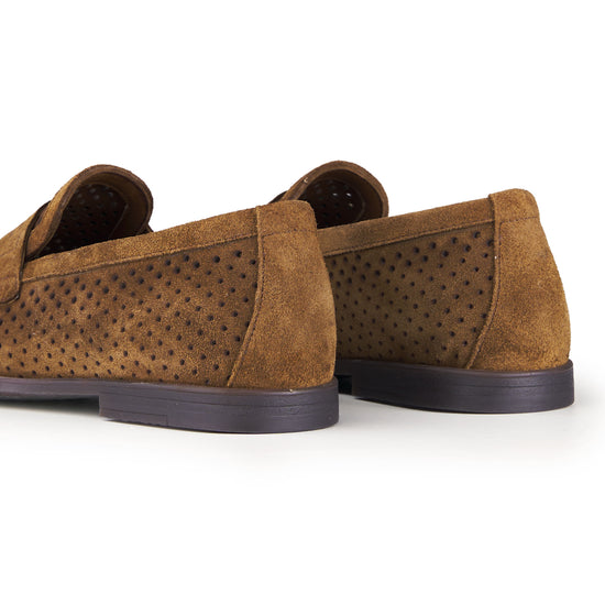 Mocassino in pelle scamosciata perforata
