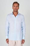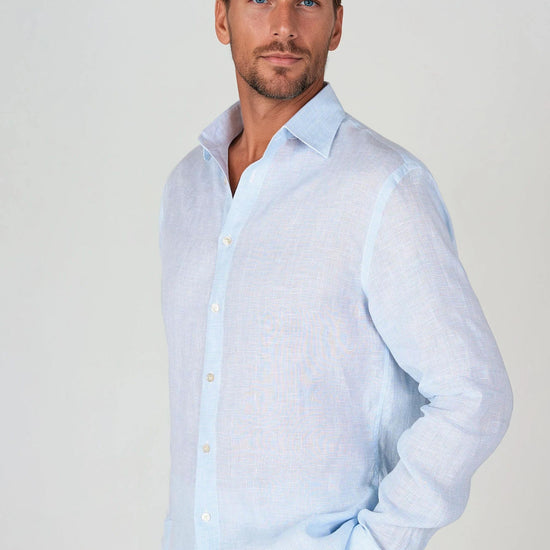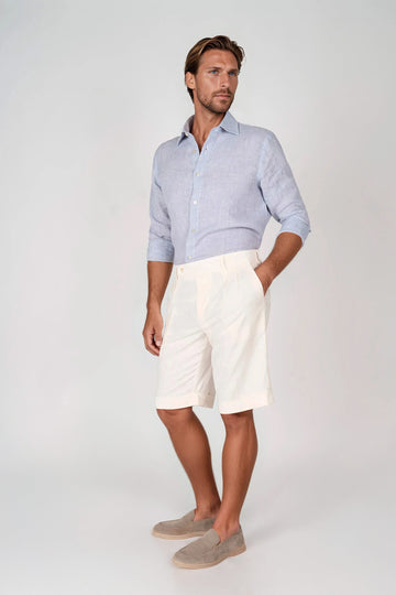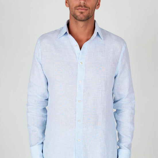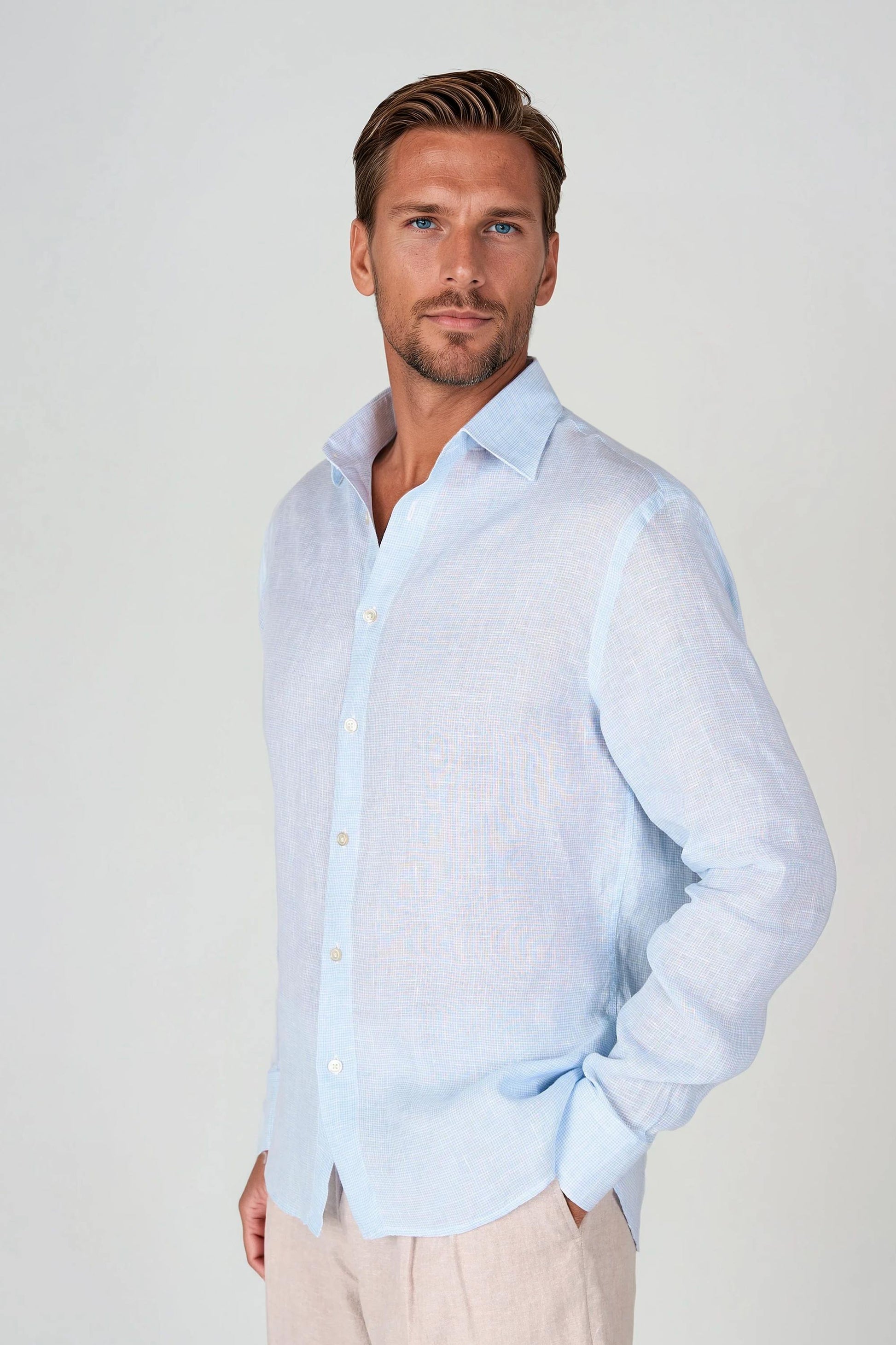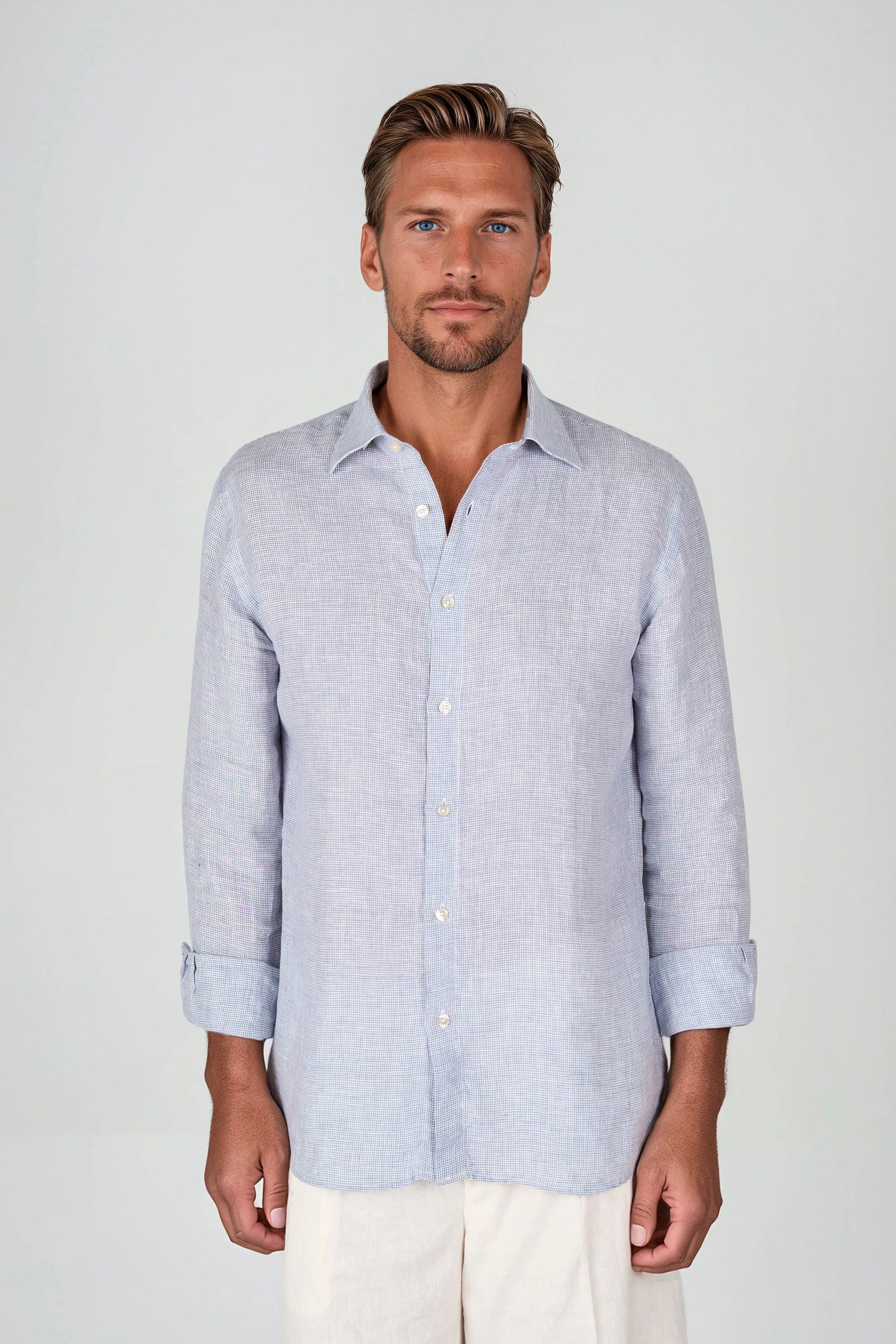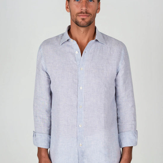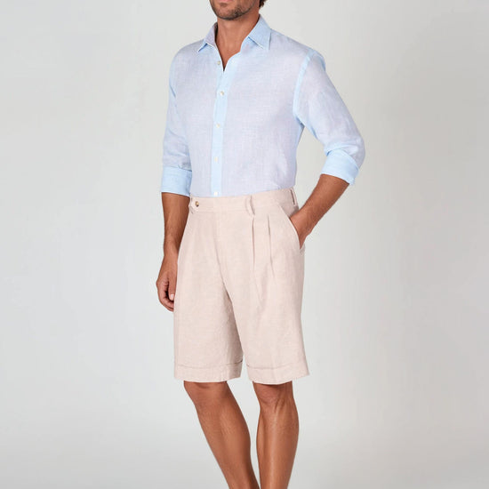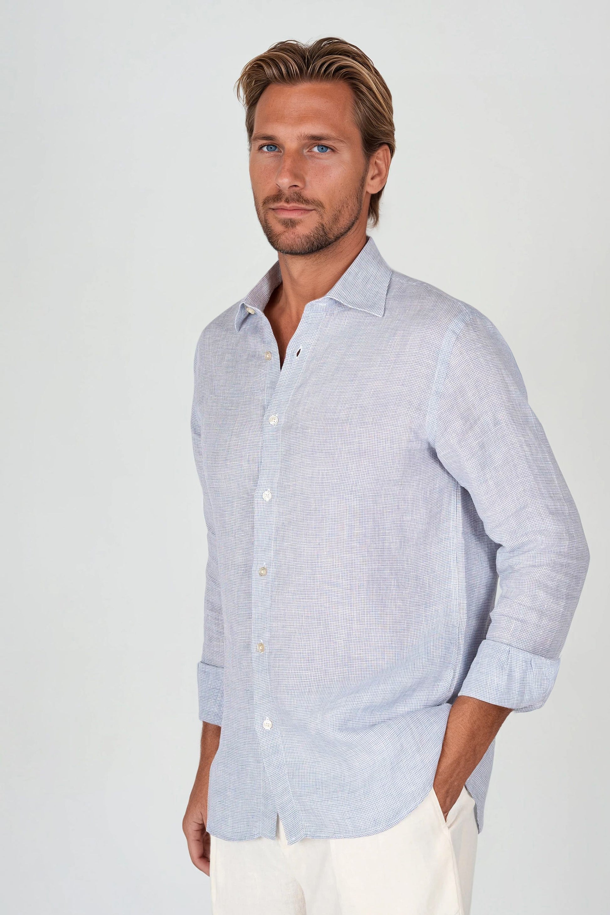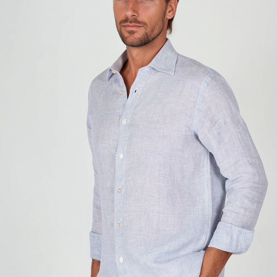 Camicia in puro lino con fantasia pied-de-poule