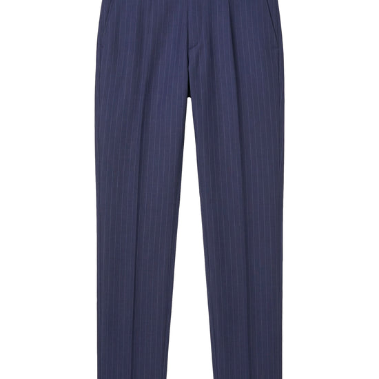 The single-breasted jacket with two-button closure features a lined chest construction, ensuring a clean silhouette and balanced structure. The design is finished with a welt chest pocket, front welt pockets, and partial AMF stitching along the lapels and key seams, adding a subtle tailored detail. The matching trousers are made from the same virgin wool fabric and feature a single front pleat, improving comfort and fit while maintaining a clean and elegant leg line. The design is completed with slanted side pockets and rear welt pockets with button closure.