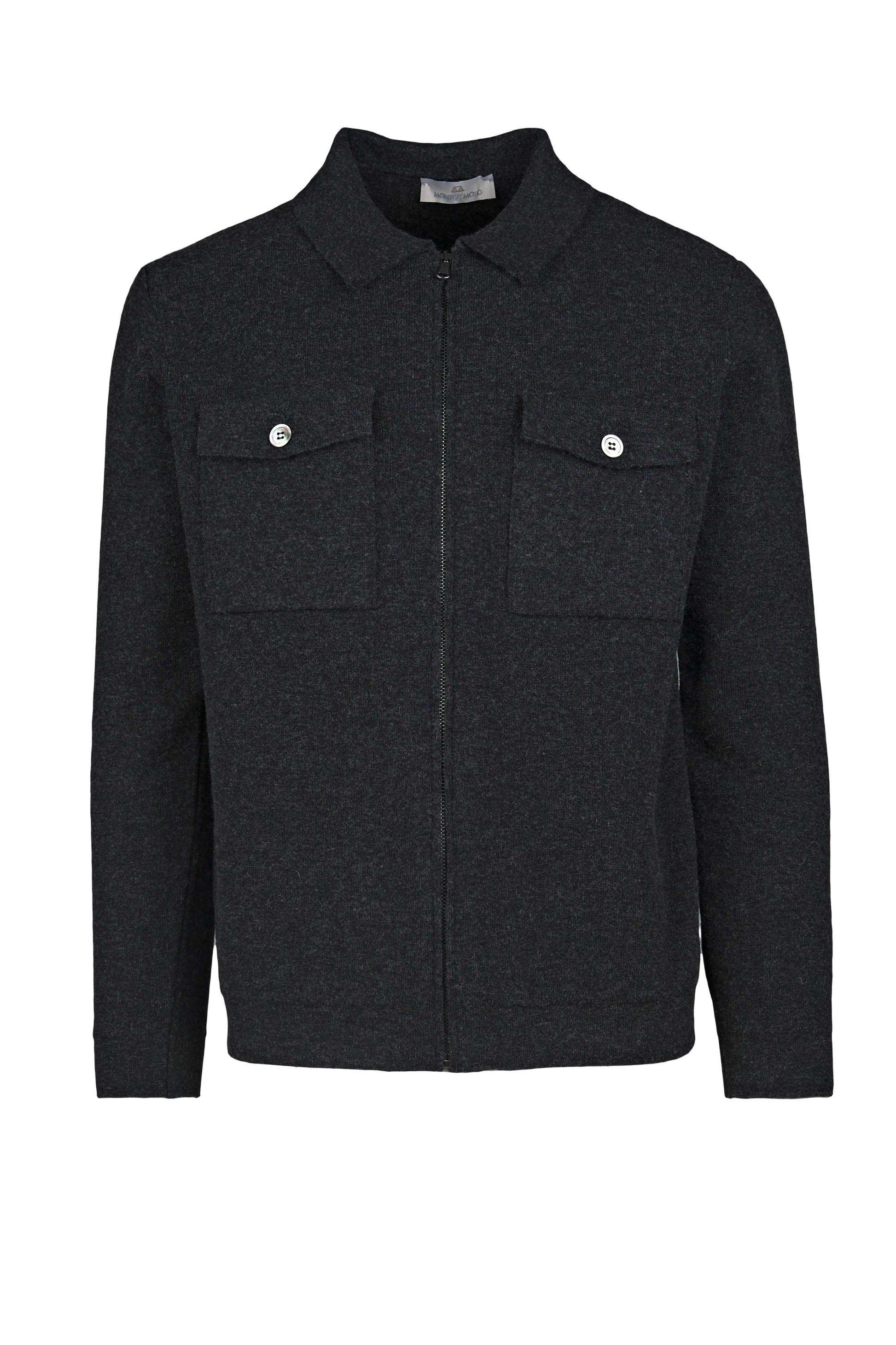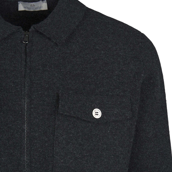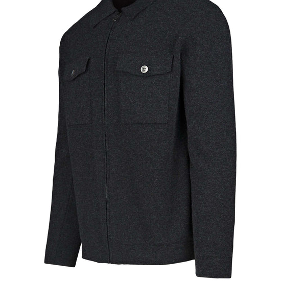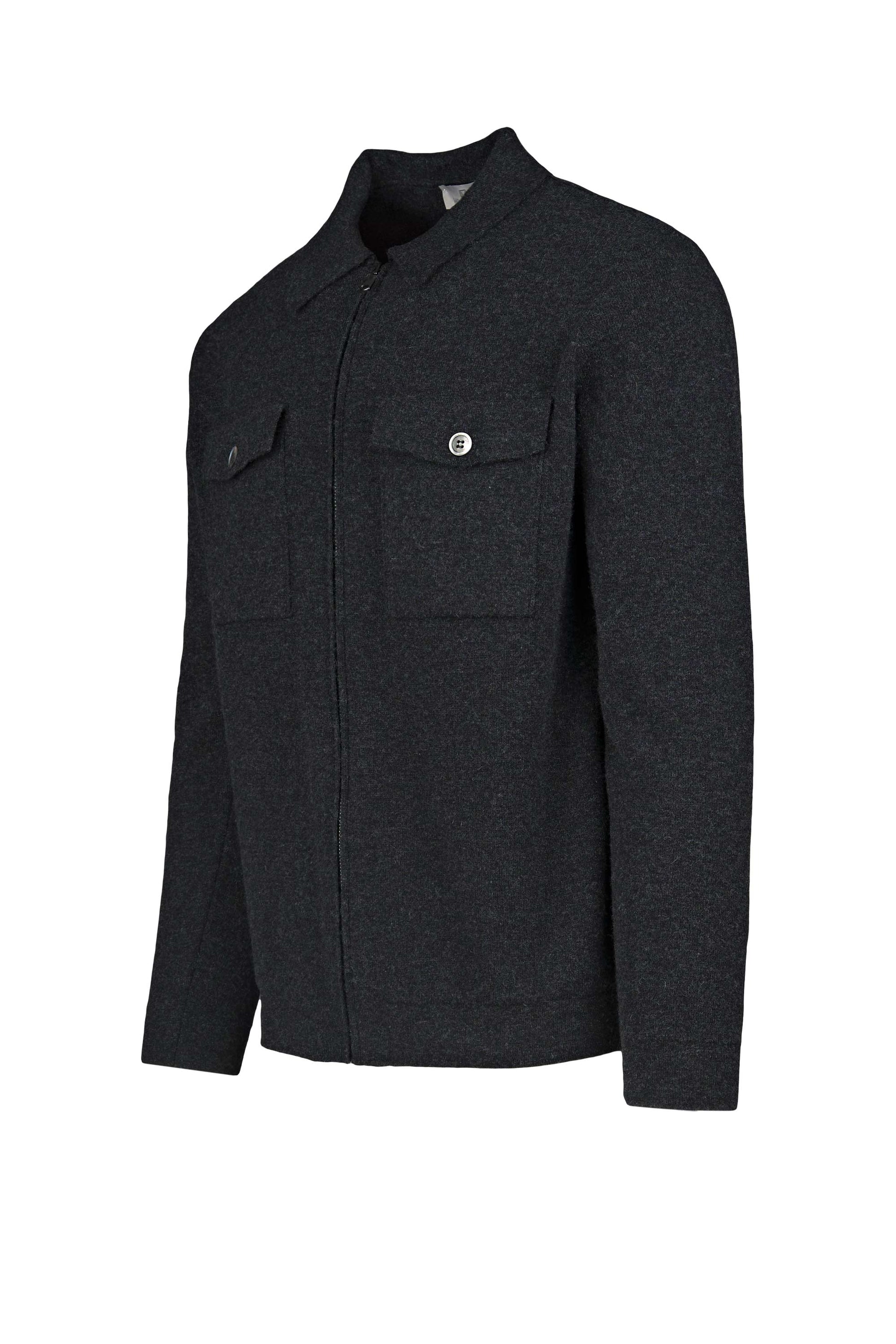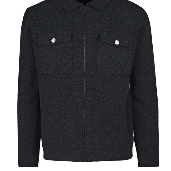 Clean, overshirt-style knit crafted from pure Supergeelong Merino wool, prized for its exceptionally soft hand and natural warmth. The compact knit construction gives structure without weight, making it ideal as a mid-layer or a light knit jacket. A sharp shirt collar frames the neckline, while the full-length front zip is neatly linked for a minimal look. Two flap chest pockets with buttons provide practical storage and a refined workwear touch. Hem and cuffs are finished plain (no ribbing) for a tidy drape. Regular fit designed to layer over tees or shirts.