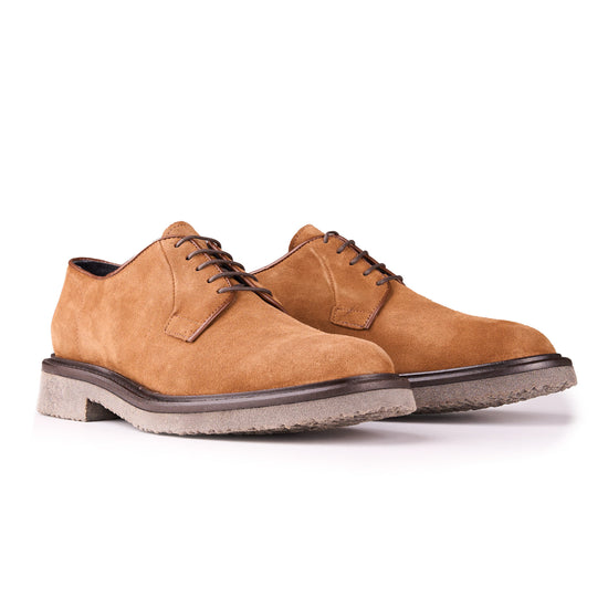 Crafted from premium suede, these derby shoes blend timeless elegance with winter-ready functionality. The crepe rubber sole ensures traction and flexibility, while smooth leather piping adds a refined finish. Fully leather-lined for comfort and breathability, this pair is designed to move seamlessly from formal attire to smart-casual looks.