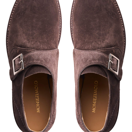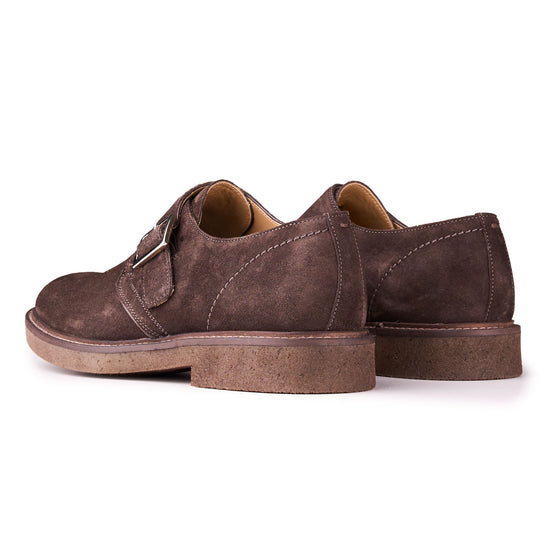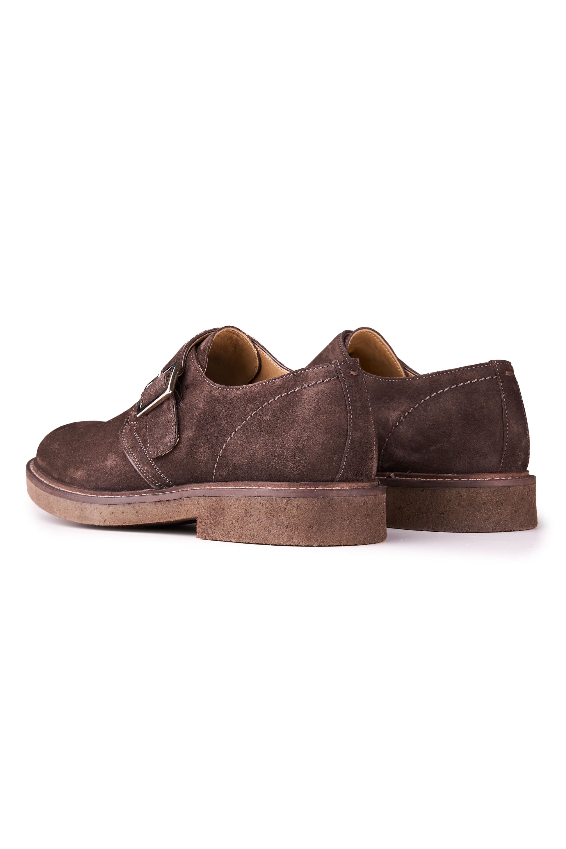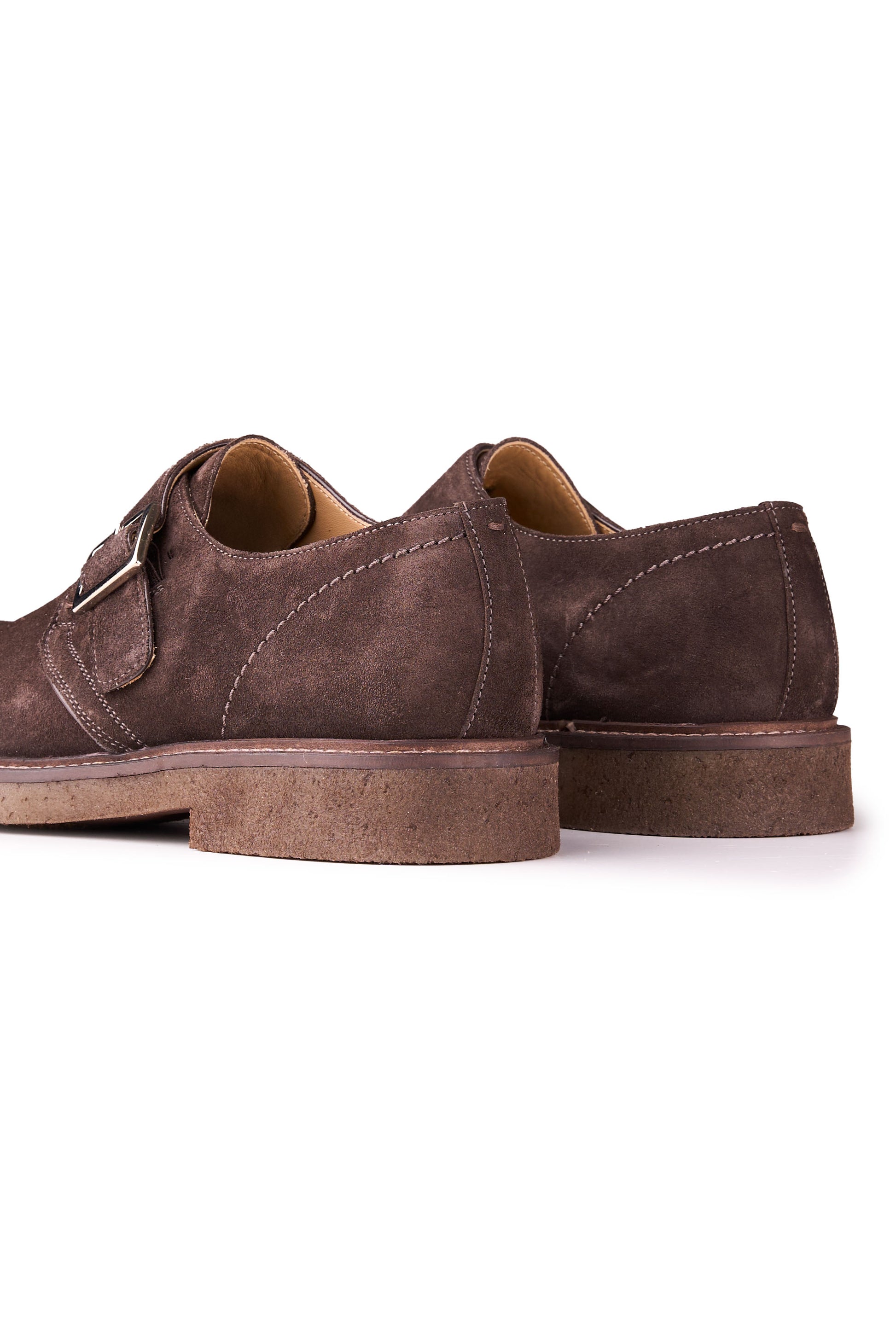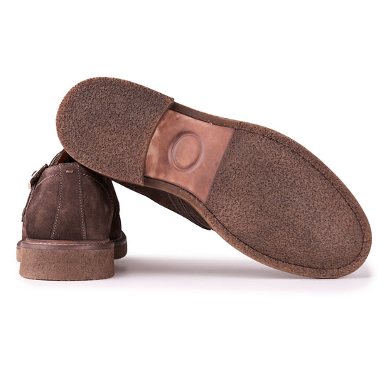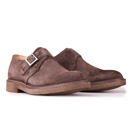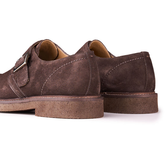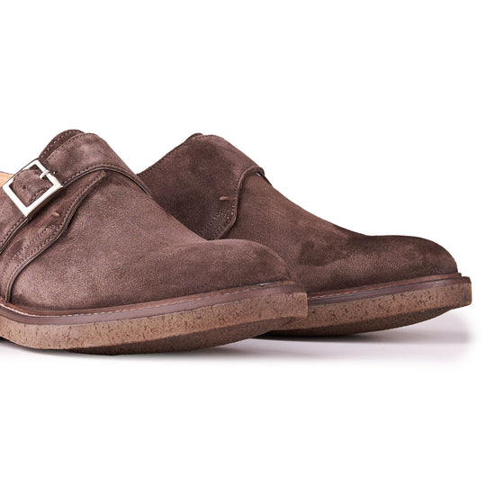 A timeless silhouette reimagined with a casual twist. These suede monk strap shoes blend refined structure with a soft textured upper and lightweight crepe sole. The brushed metal buckle and exposed stitching highlight artisanal craftsmanship, while the blake construction ensures comfort and durability. Designed for everyday wear with a hint of quiet elegance, they offer versatility for both relaxed and polished looks.