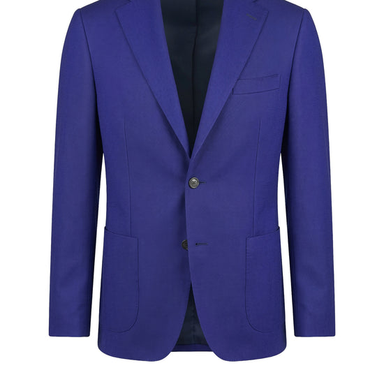 The single-breasted jacket features a two-button closure and a lined chest construction, providing structure while maintaining a neat silhouette. The design is completed with a welt chest pocket, patch pockets on the front, and partial AMF stitching along the lapels and key seams, adding a subtle tailored touch.