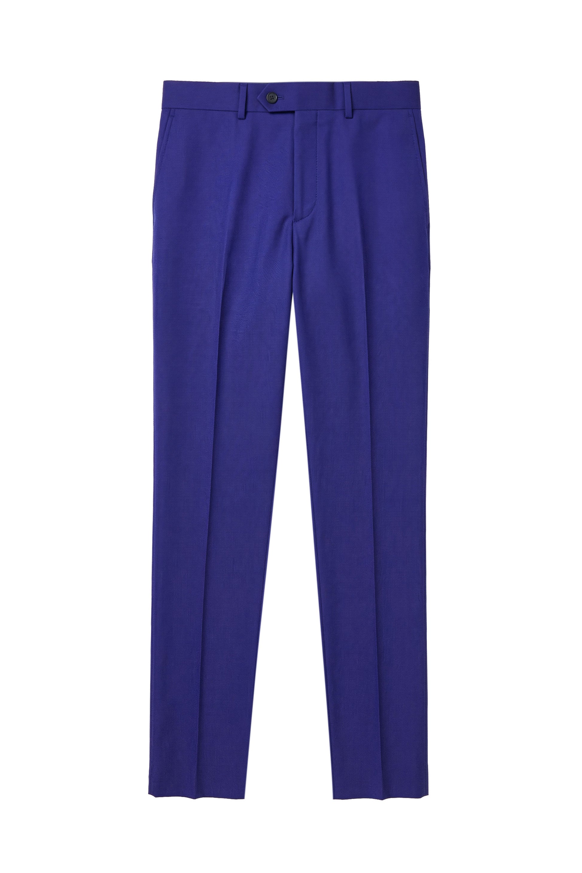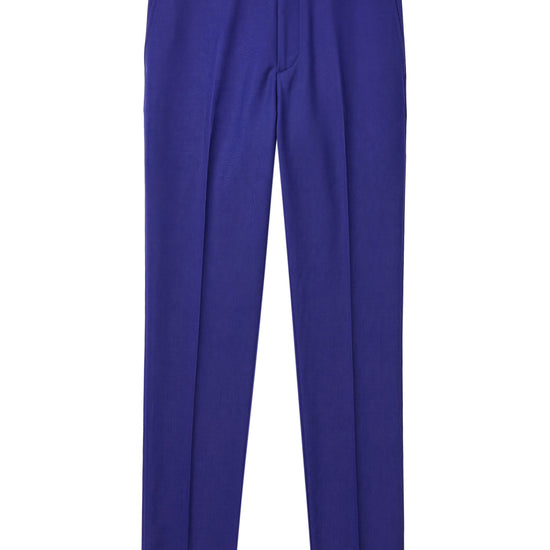 The matching trousers are made from the same fabric and feature a single front pleat, improving comfort while preserving a clean and elegant leg line. The design is finished with slanted side pockets and rear welt pockets with button closure.